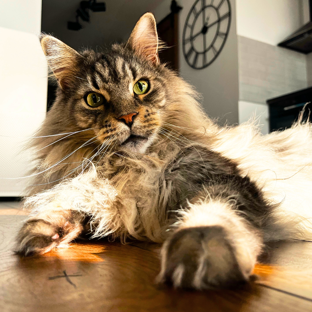Rasa kota pochodząca z Ameryki Północnej. Koty rasy maine coon wyróżnia wielkość (są jednymi z największych kotów domowych), inteligencja i żywiołowość. W wyniku sterowanej selekcji stały się rasą nie tylko konwencjonalnie piękną, lecz przede wszystkim pożądaną ze względu na to, że jej przedstawiciele przywiązują się do człowieka i – w porównaniu z innymi rasami kotów oraz innymi gatunkami zwierząt domowych – są bardziej prospołeczne, towarzyskie i łatwiejsze we współżyciu. Łatwo adaptują się do nowych warunków, są bardzo inteligentne i chętnie się uczą.